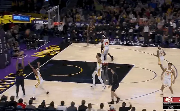 第二节比赛中,斯马特底角三分也投进,湖人三分18中11命中率61%领先老鹰20分。